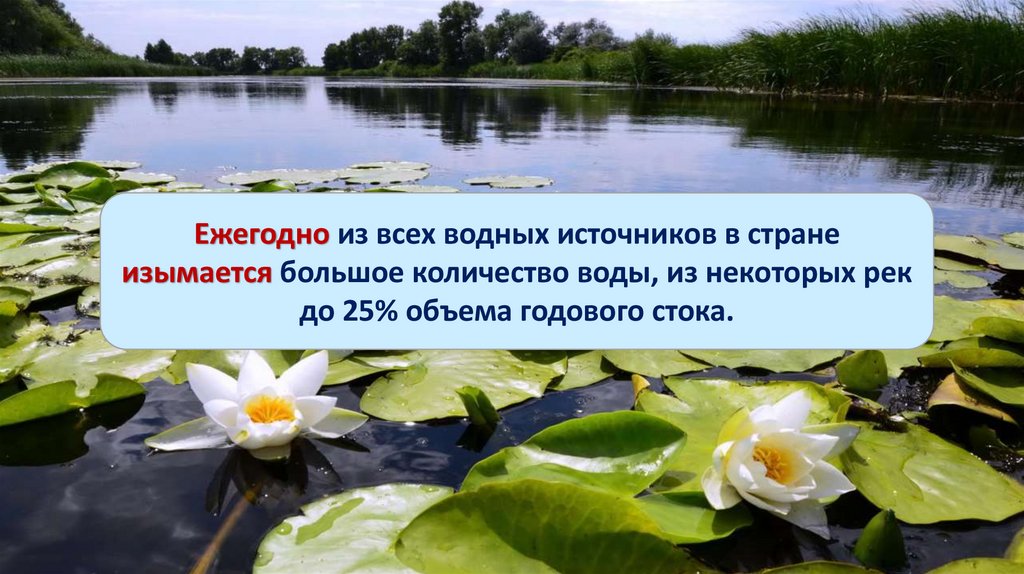 Ежегодно из всех водных источников в странеизымается большое количество воды, из некоторых рек