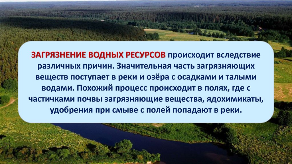 ЗАГРЯЗНЕНИЕ ВОДНЫХ РЕСУРСОВ происходит вследствиеразличных причин. Значительная часть загрязняющих
