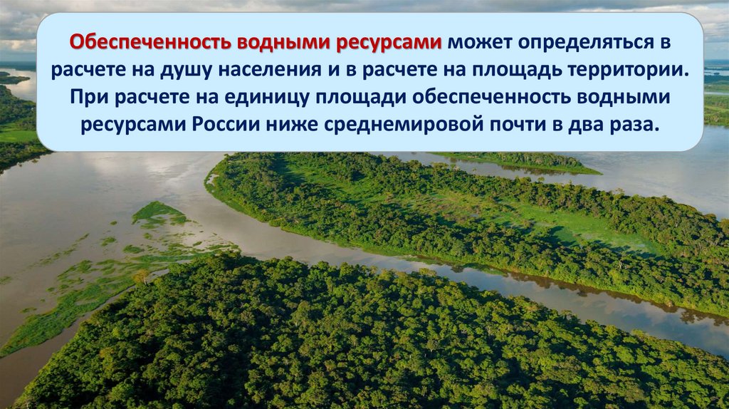 Обеспеченность водными ресурсами может определяться врасчете на душу населения и в расчете на площадь территории.