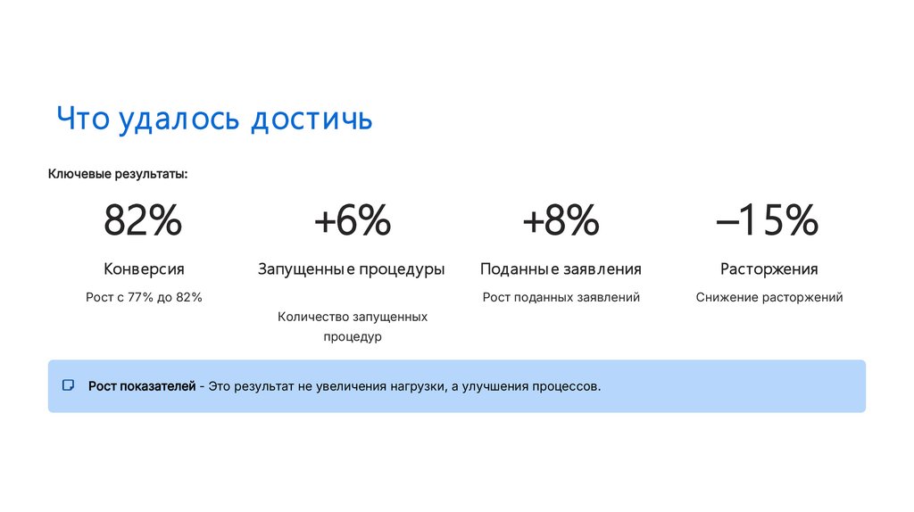 Рост показателей - Это результат не увеличения нагрузки, а улучшения процессов.