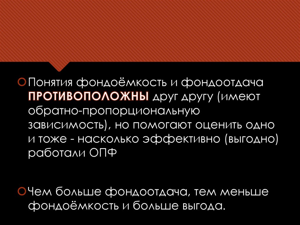 Понятия фондоёмкость и фондоотдачадруг другу (имеют