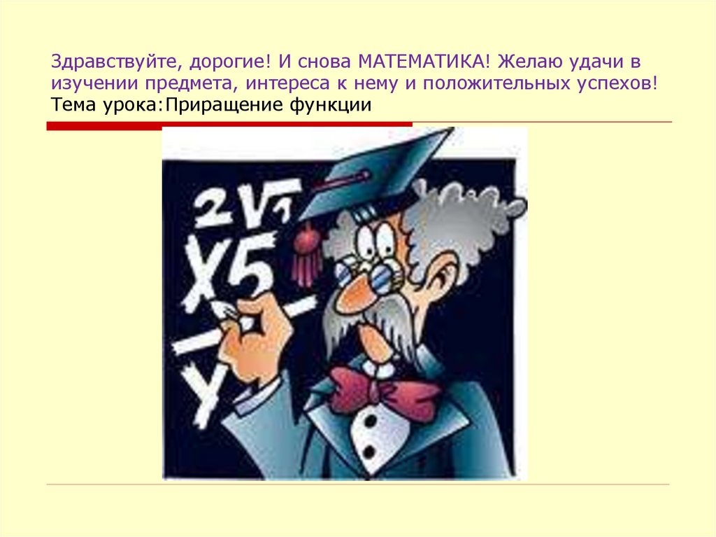 1. Здравствуйте, дорогие! И снова МАТЕМАТИКА! Желаю удачи в изучении предмета, интереса к нему и положительных успехов! Тема