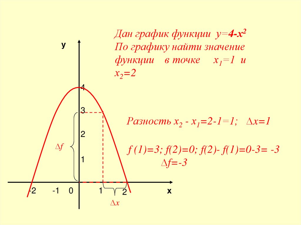 3. Дан график функции у=4-х2 По графику найти значение функции в точке х1=1 и х2=2