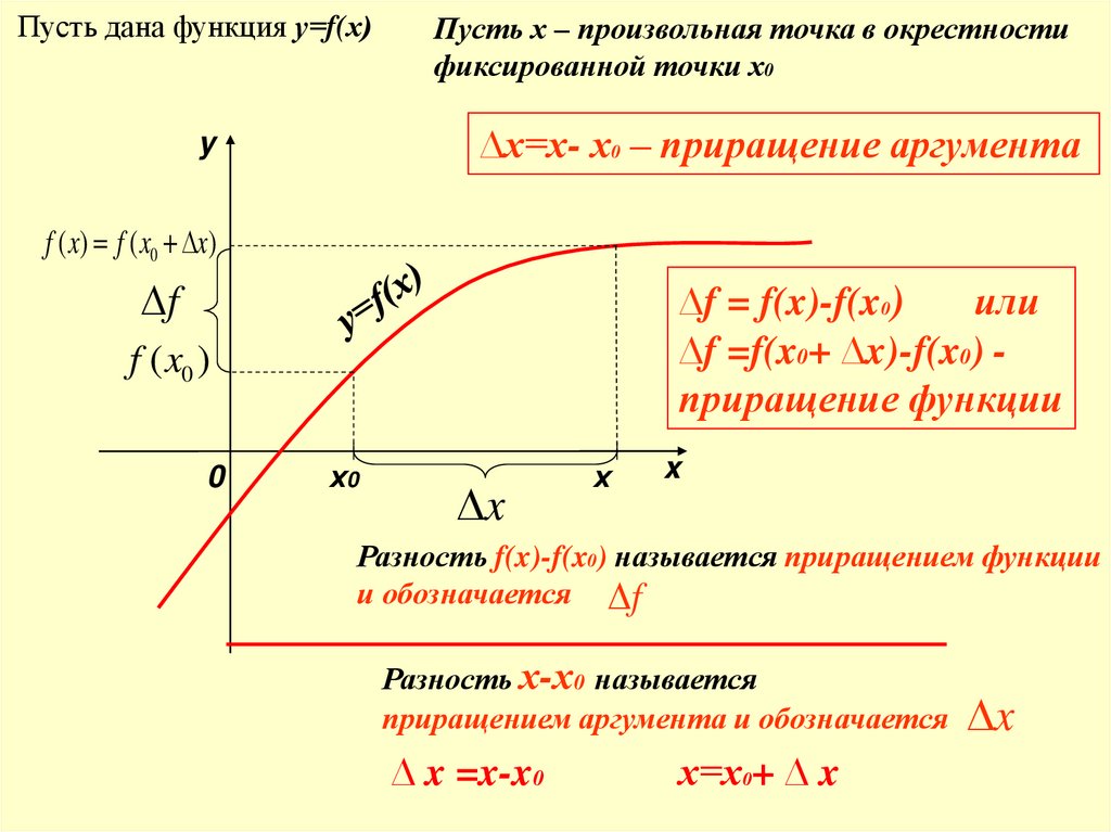 Разность f(x)-f(x0) называется приращением функции