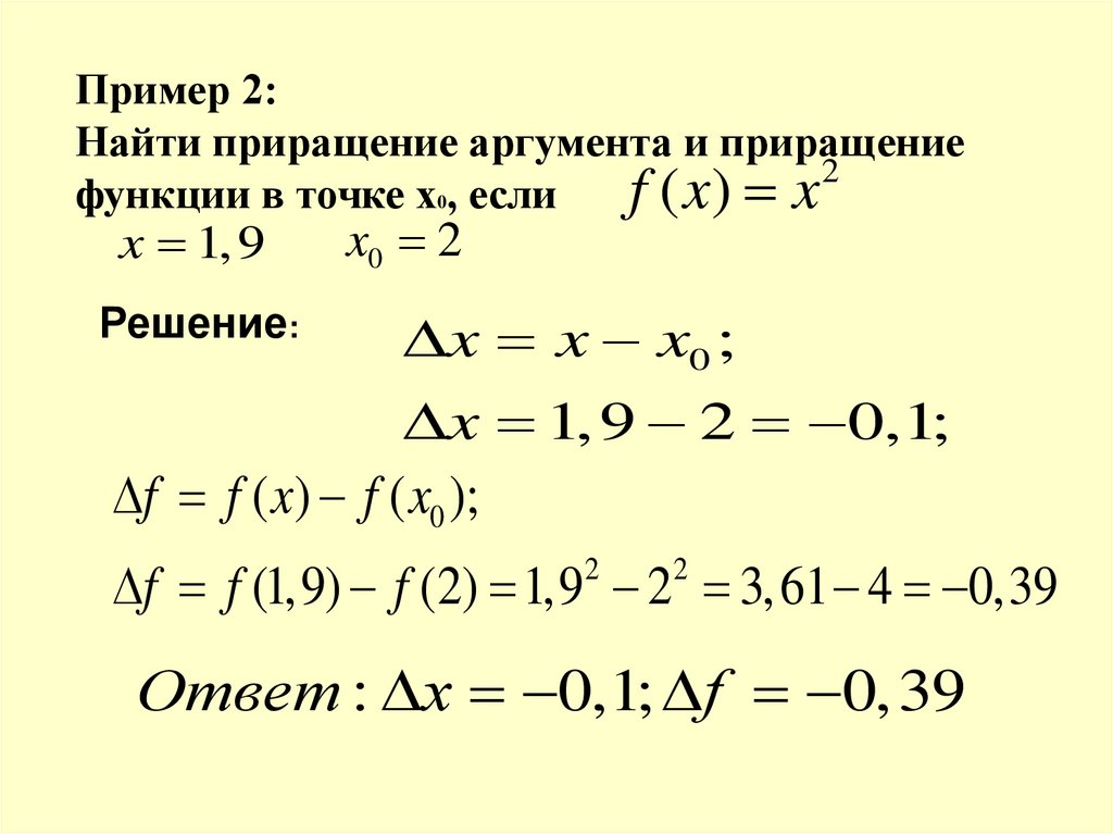 Пример 2:Найти приращение аргумента и приращение