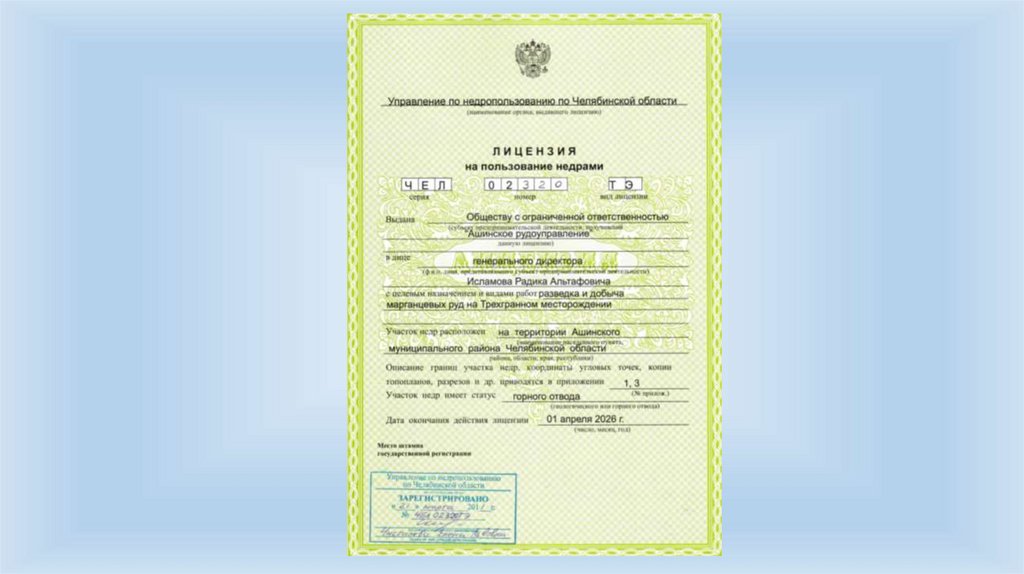 ООО "Ашинское рудоуправление" принадлежит Право пользования