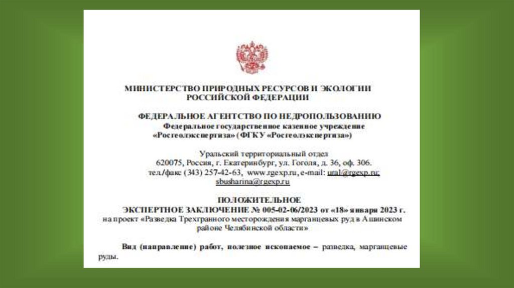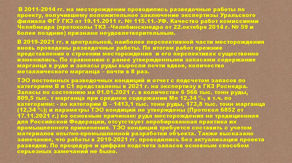 По результатам проведенных геологоразведочных работ НТС Южно-Уральского геологического управления