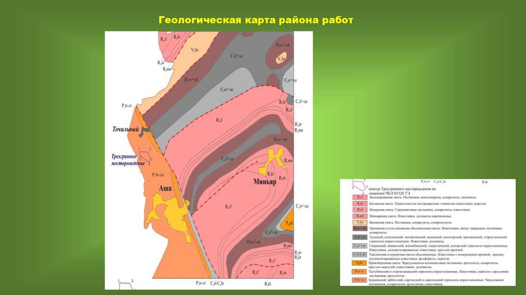 исследованиями выявлены основные черты стратиграфии, тектоники, гидрогеологии района работ,