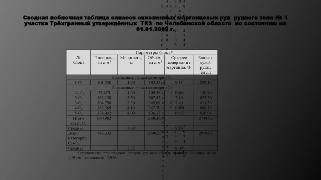 балансовые запасы марганцевых руд по состоянию на 01.01.2009 г.