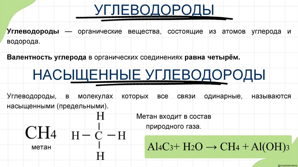 УГЛЕВОДОРОДЫУглеводороды — органические вещества, состоящие из атомов углерода и