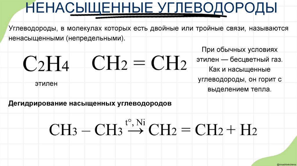 НЕНАСЫЩЕННЫЕ УГЛЕВОДОРОДЫУглеводороды, в молекулах которых есть двойные или тройные связи, называются
