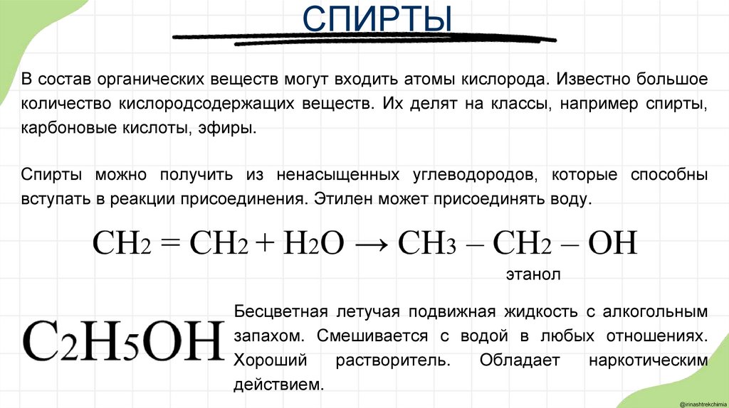 СПИРТЫВ состав органических веществ могут входить атомы кислорода. Известно большое