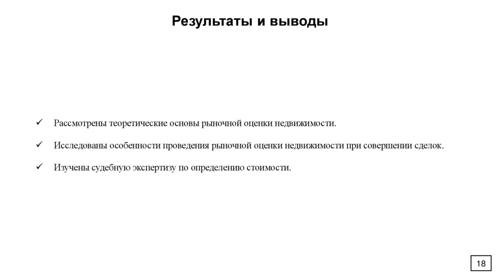 Результаты и выводыРассмотрены теоретические основы рыночной оценки недвижимости.