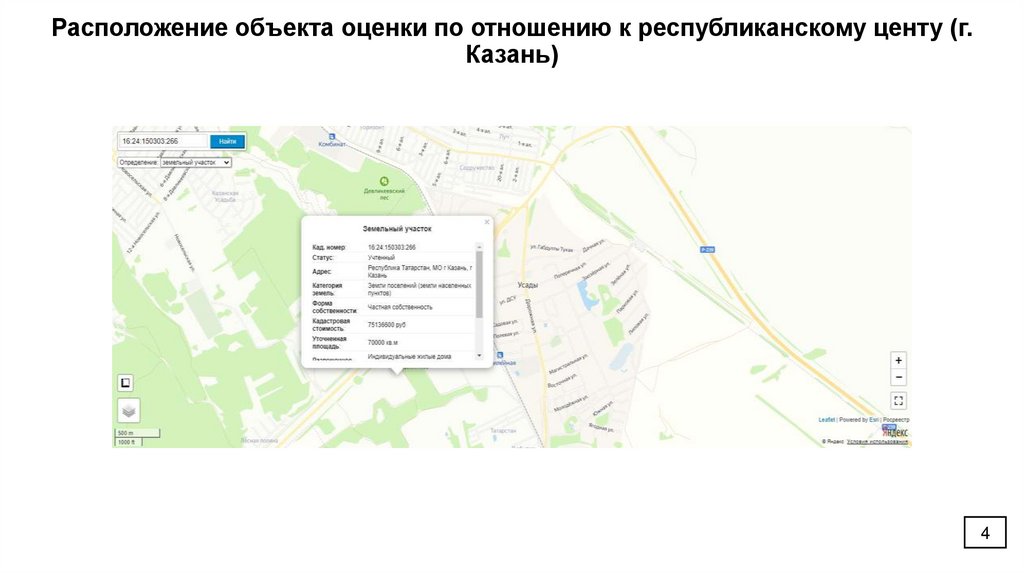 Расположение объекта оценки по отношению к республиканскому центу (г.Казань)