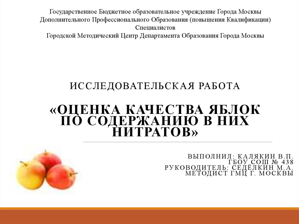 оценить качество яблок, купленной в магазине и наовощном рынке, по содержанию в них нитратов и