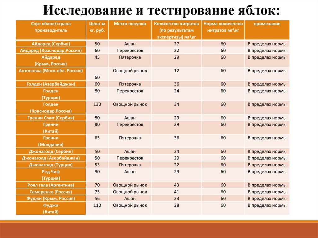 Объектами исследования являются яблоки:а) приобретенные в сетевых магазинах г. Москвы;