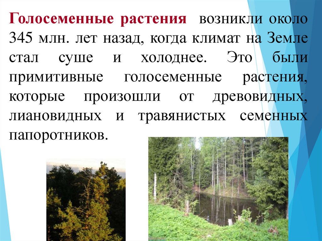 Голосеменные растения возникли около345 млн. лет назад, когда климат на Земле