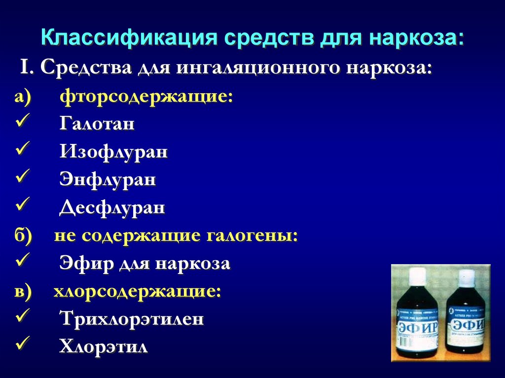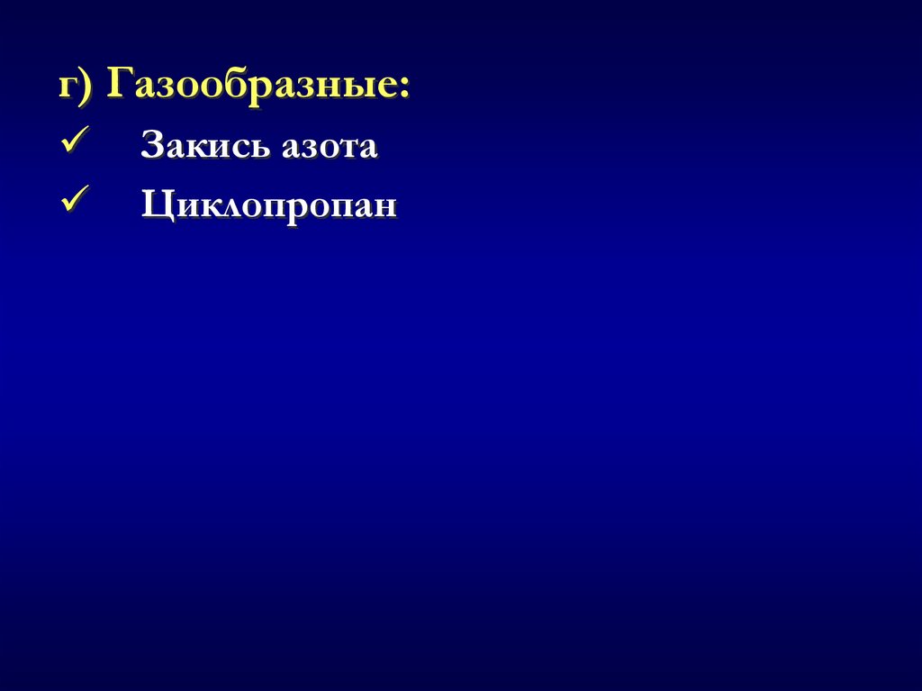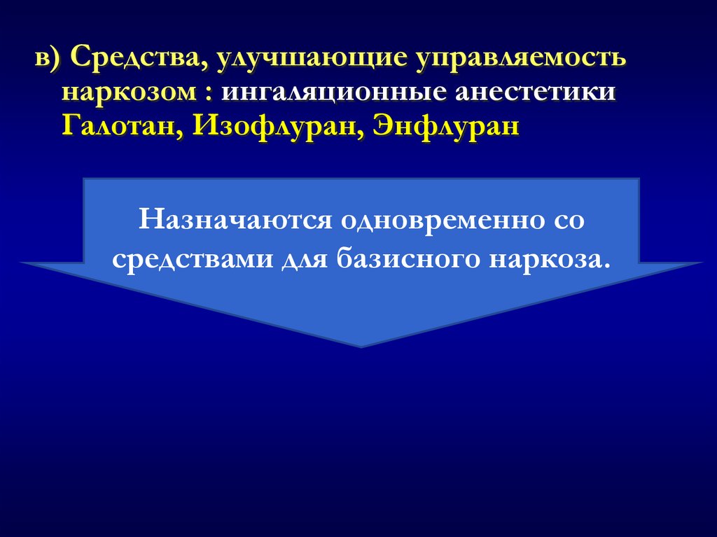 в) Средства, улучшающие управляемостьнаркозом : ингаляционные анестетики