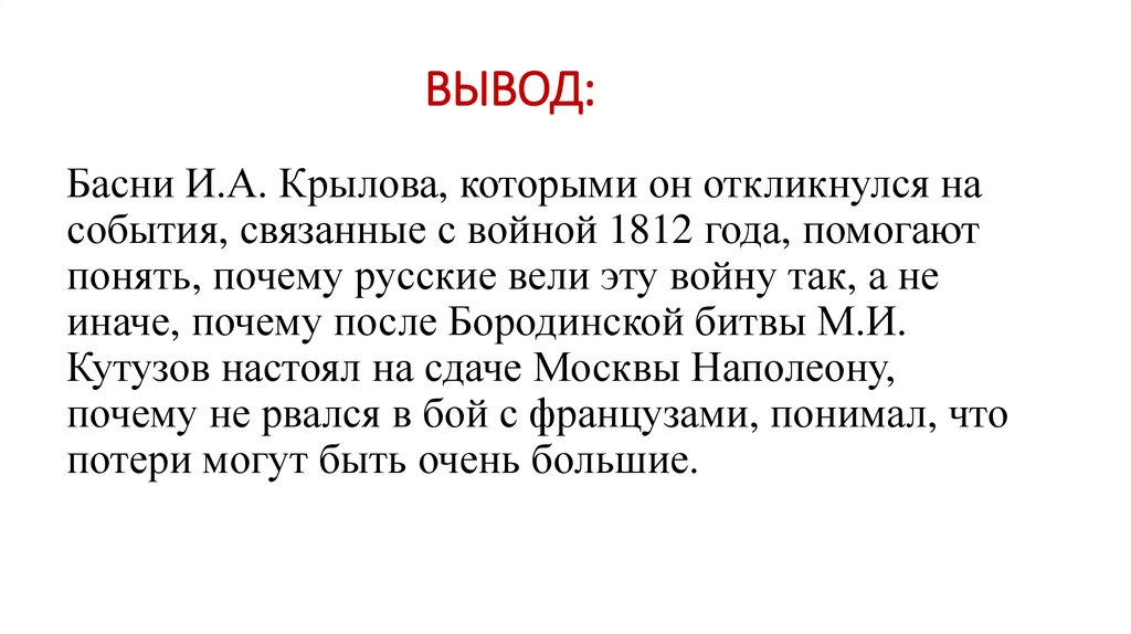 ВЫВОД:Басни И.А. Крылова, которыми он откликнулся на