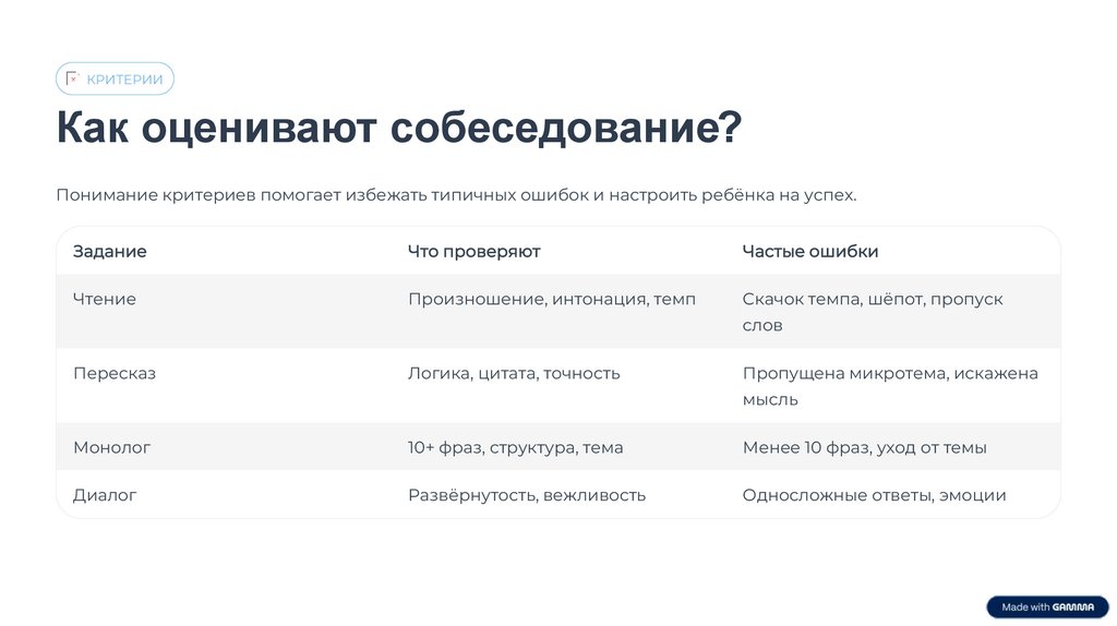 Понимание критериев помогает избежать типичных ошибок и настроить ребёнка на успех.