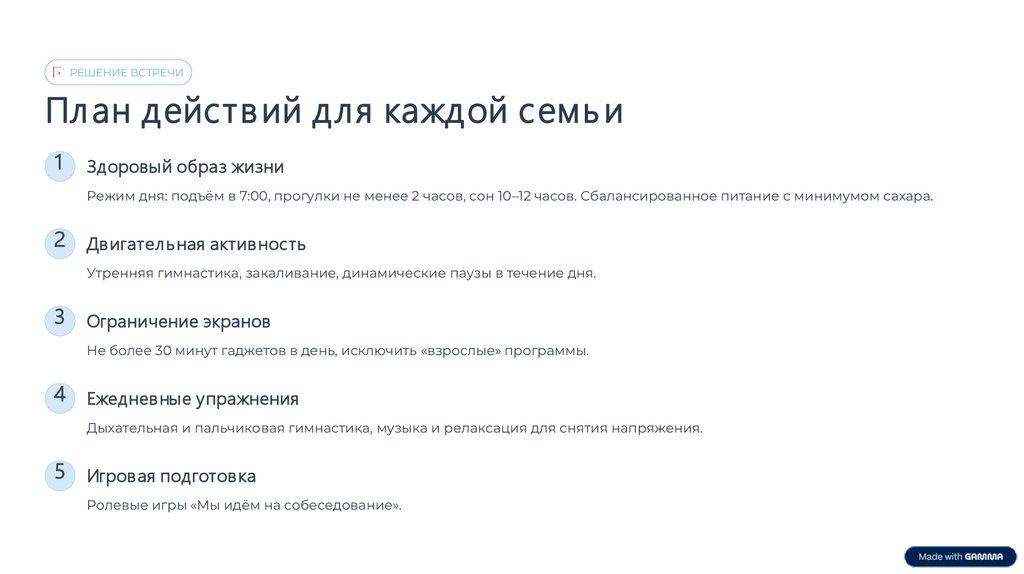 РЕШЕНИЕ ВСТРЕЧИПл ан действ ий для каждой семь и