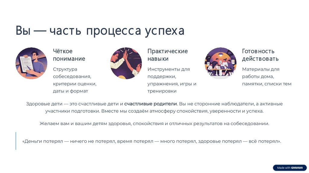 Желаем вам и вашим детям здоровья, спокойствия и отличных результатов на собеседовании.