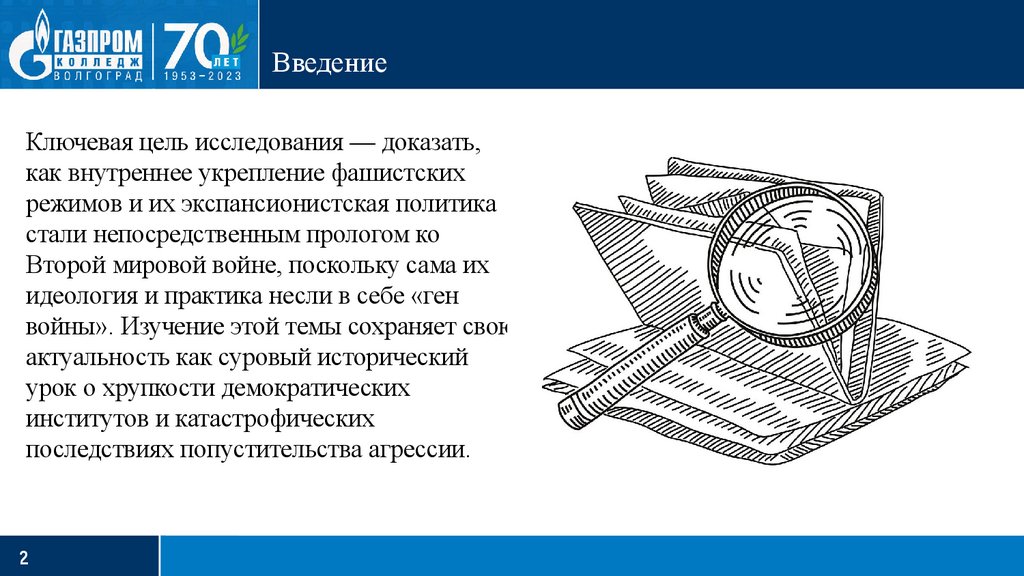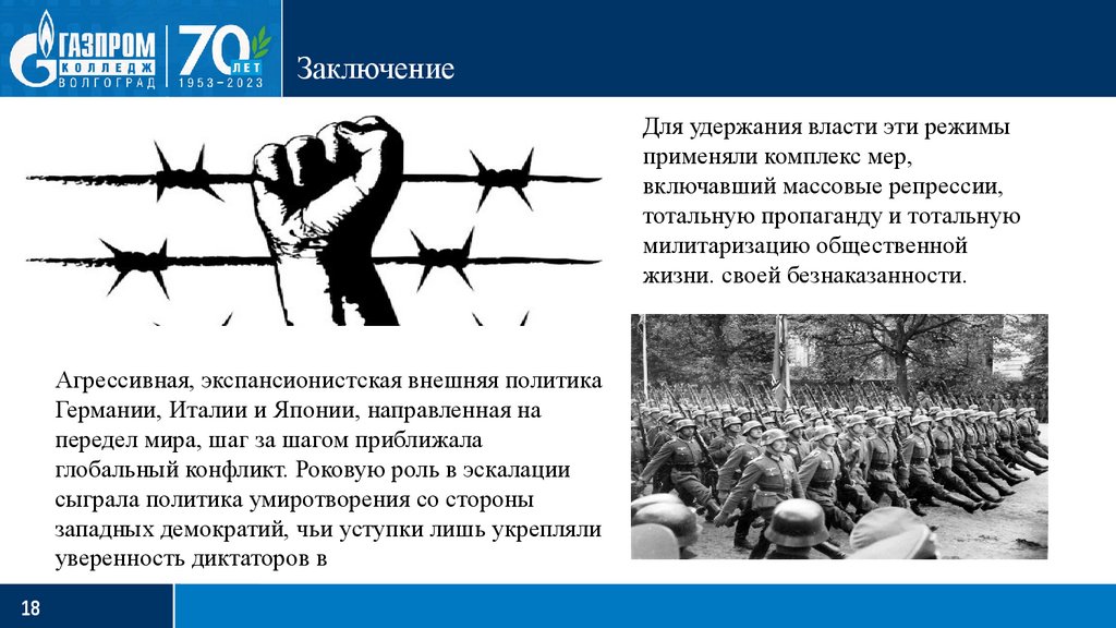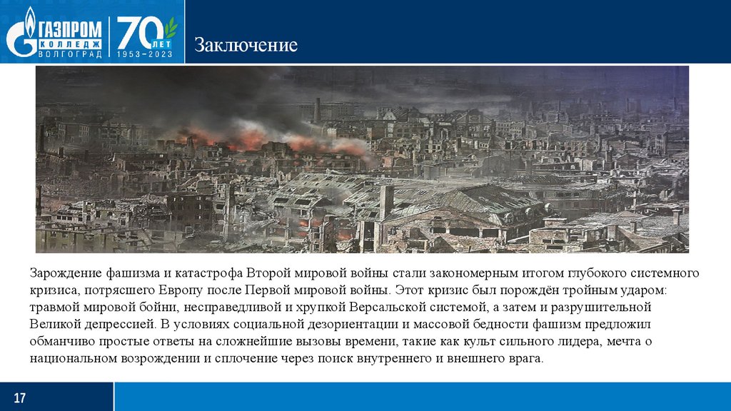 ЗаключениеЗарождение фашизма и катастрофа Второй мировой войны стали закономерным итогом глубокого системного