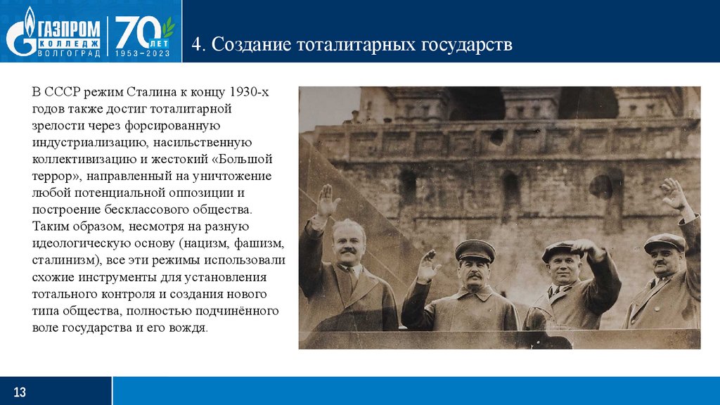 4. Создание тоталитарных государствВ СССР режим Сталина к концу 1930-х