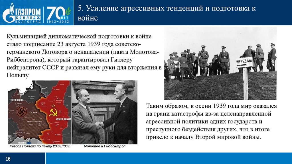 стало подписание 23 августа 1939 года советскогерманского Договора о ненападении (пакта МолотоваРиббентропа), который гарантировал Гитлеру