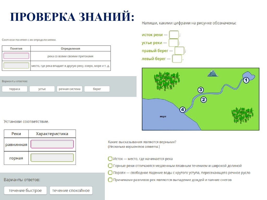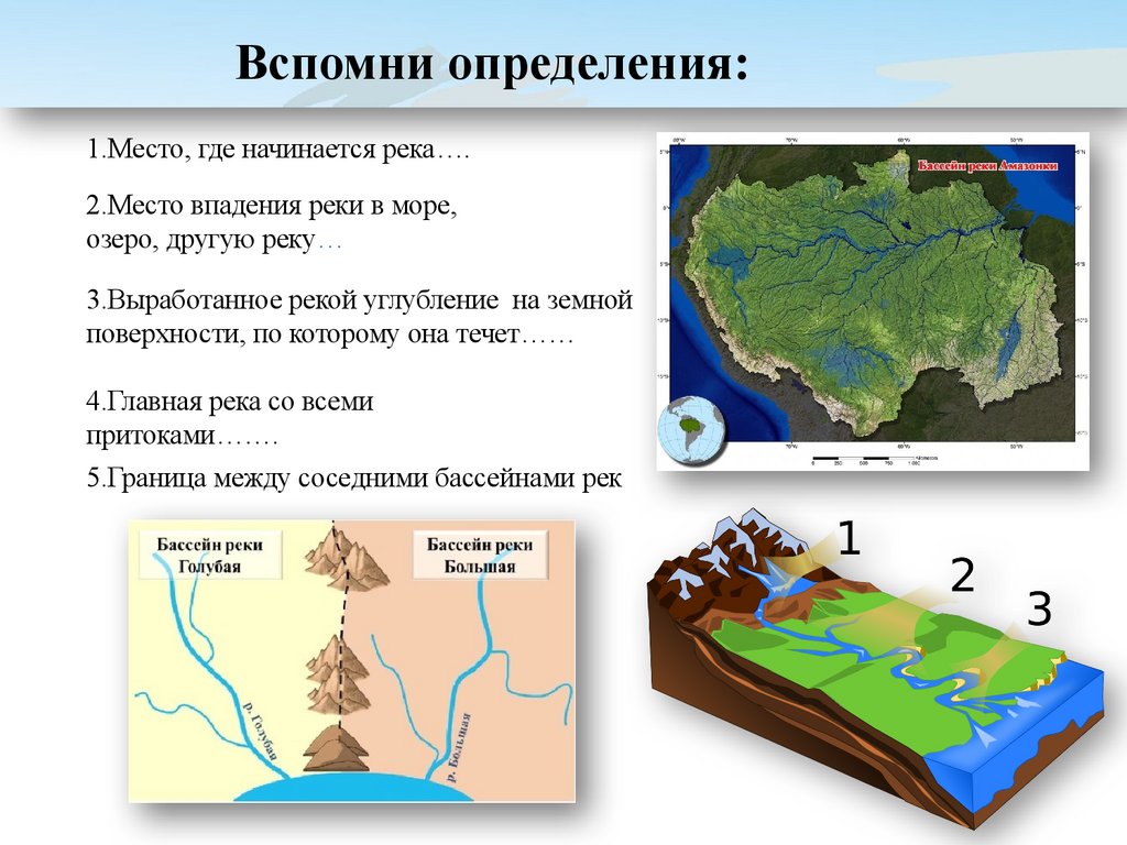 Вспомни определения:1.Место, где начинается река….