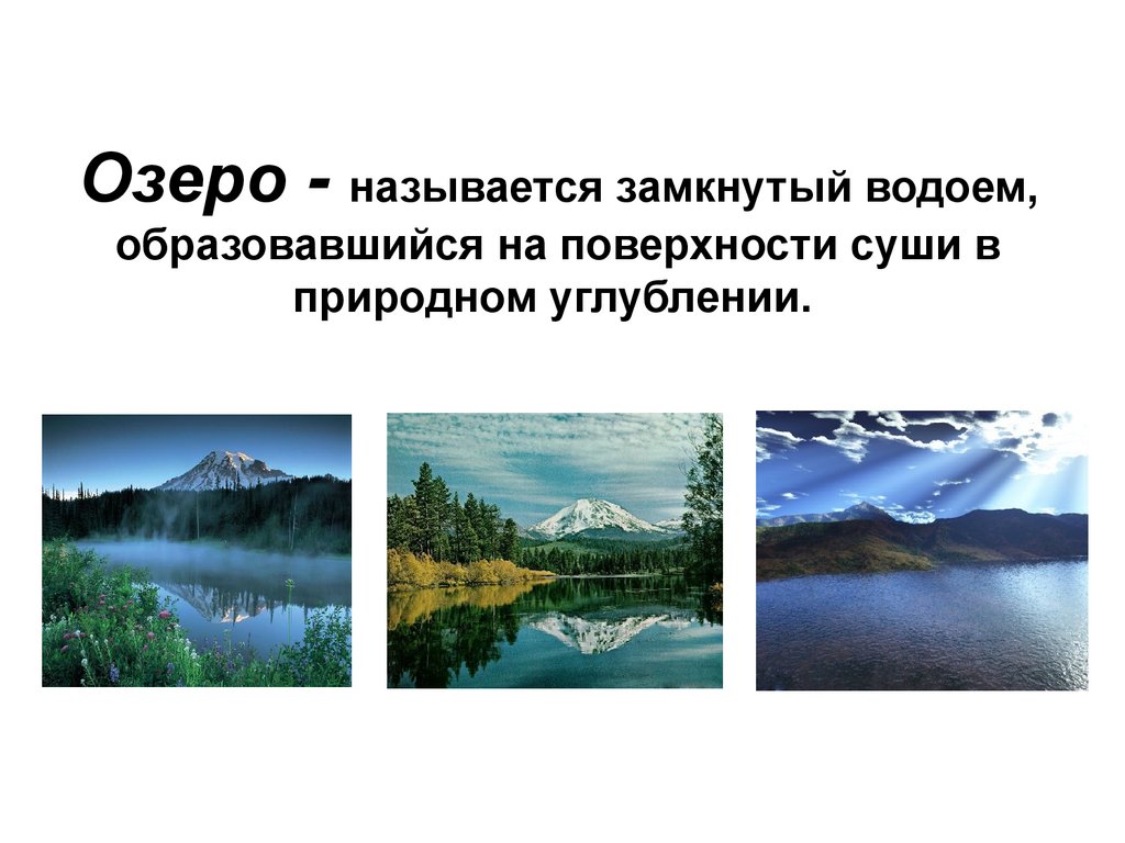Озеро - называется замкнутый водоем,образовавшийся на поверхности суши в