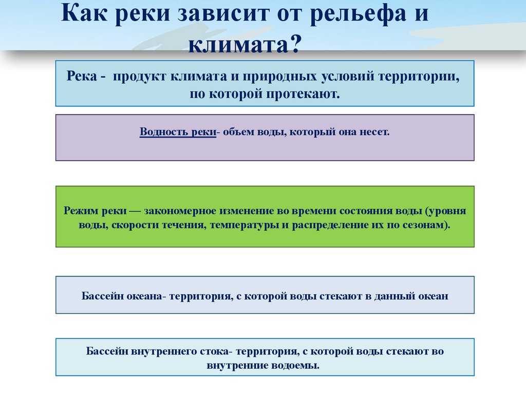 Как реки зависит от рельефа иклимата?