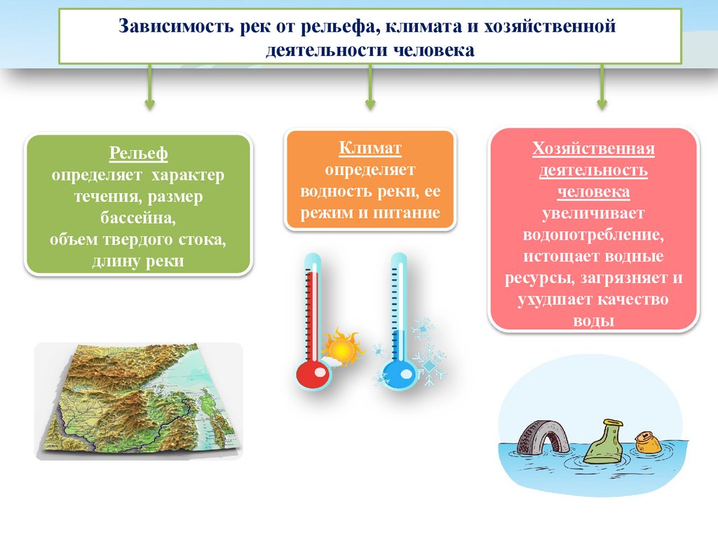 Зависимость рек от рельефа, климата и хозяйственной