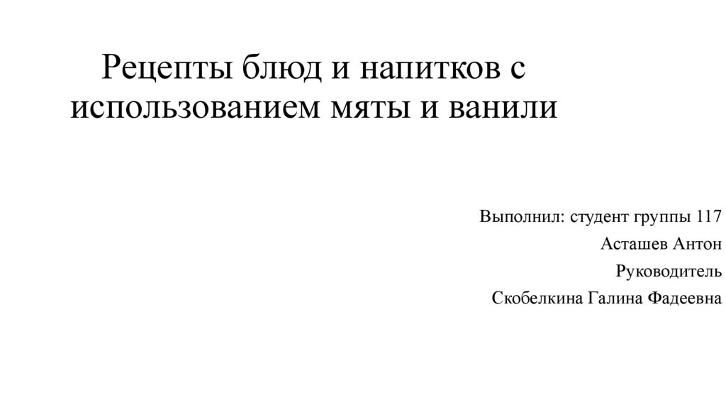 1. Рецепты блюд и напитков с использованием мяты и ванили