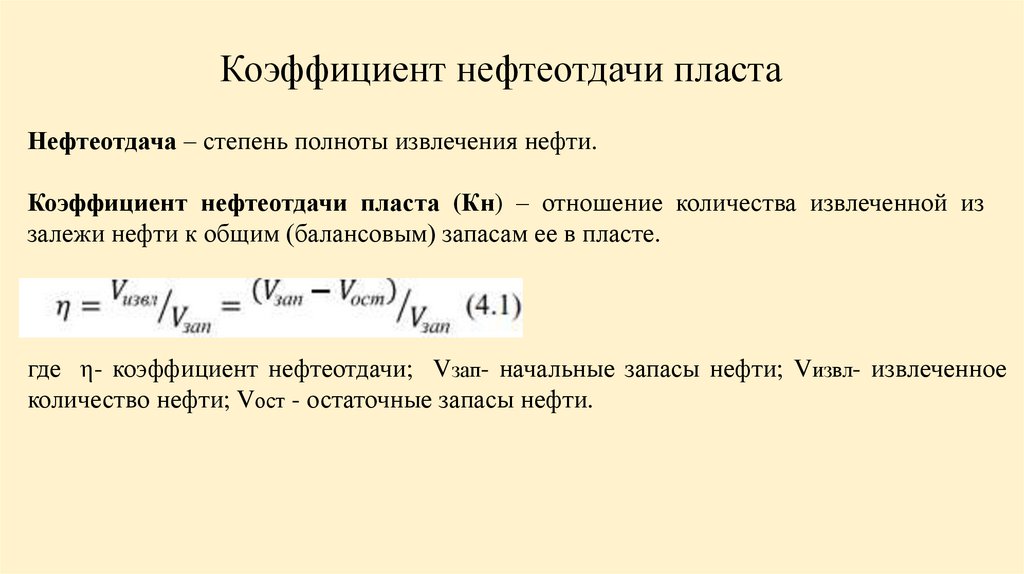 Он определяется как доля объема извлеченной нефти по отношению к ее запасам,
