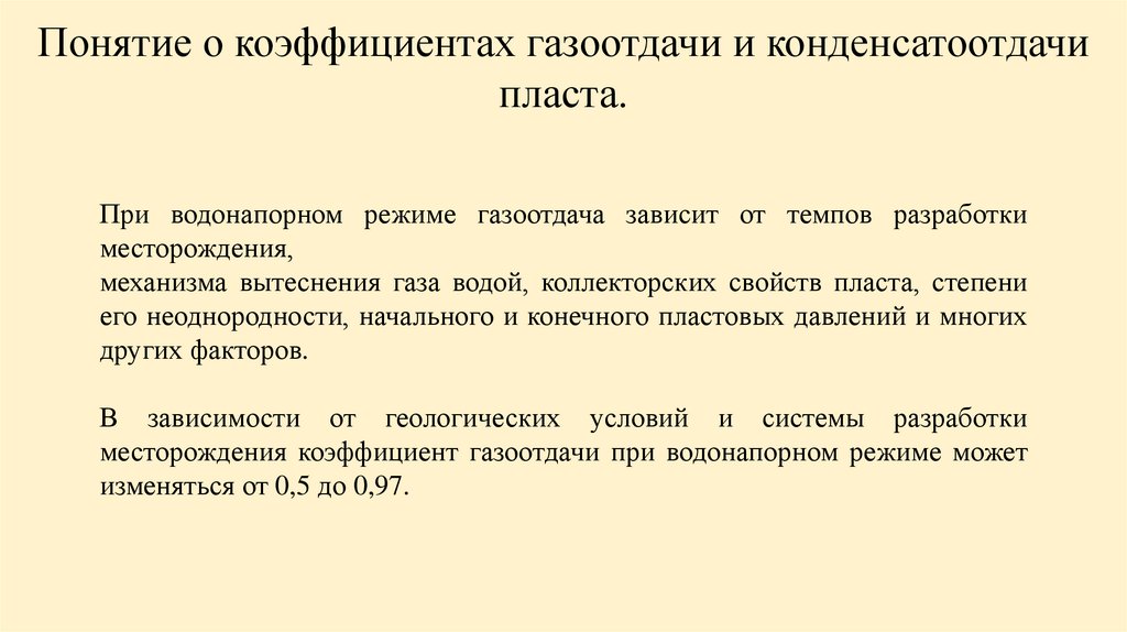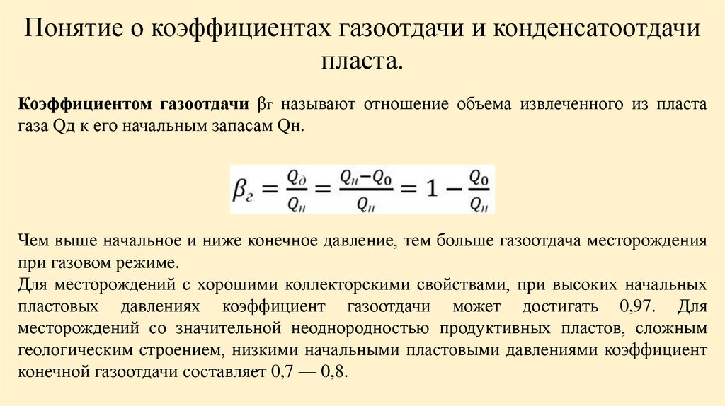 месторождения коэффициент газоотдачи при водонапорном режиме может
