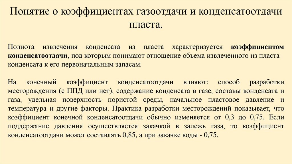 Полнота извлечения конденсата из пласта характеризуется коэффициентом