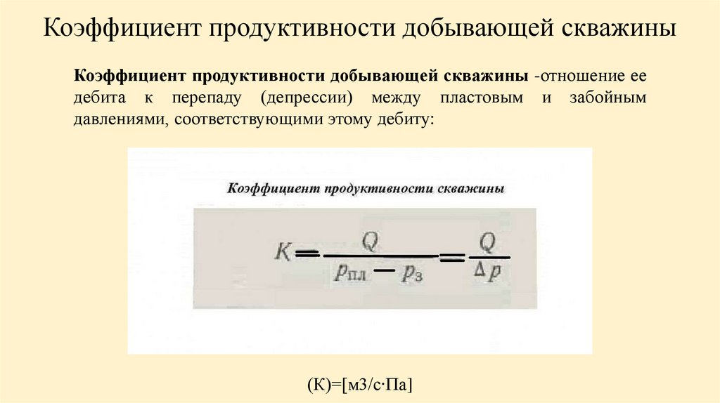 Коэффициент продуктивности добывающей скважиныКоэффициент продуктивности добывающей скважины -отношение ее