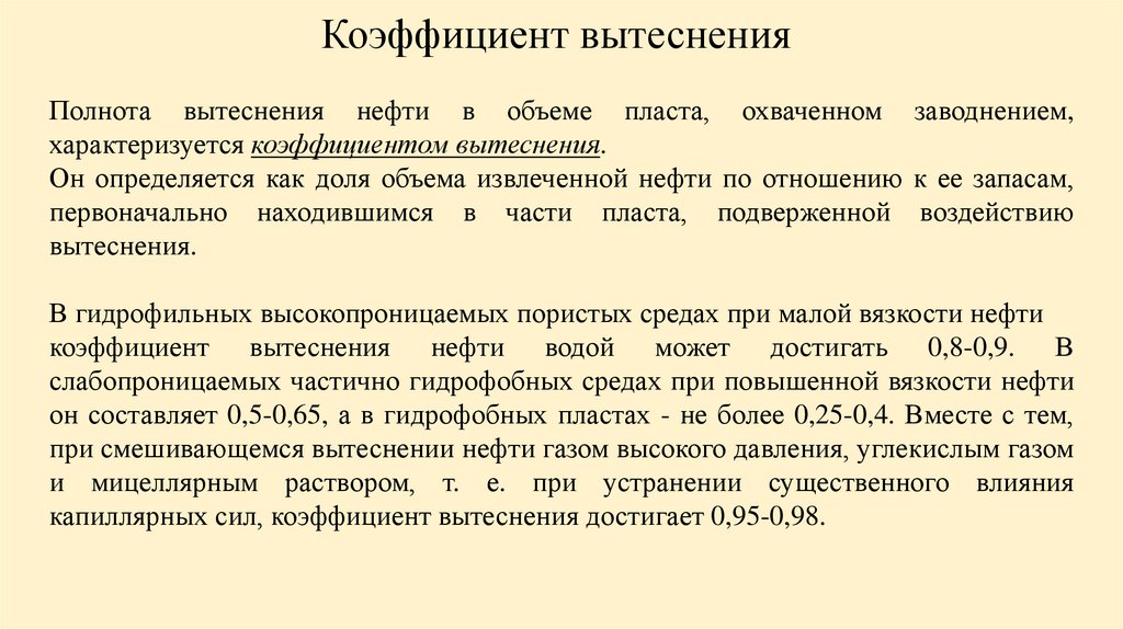 характеризуется коэффициентом вытеснения.