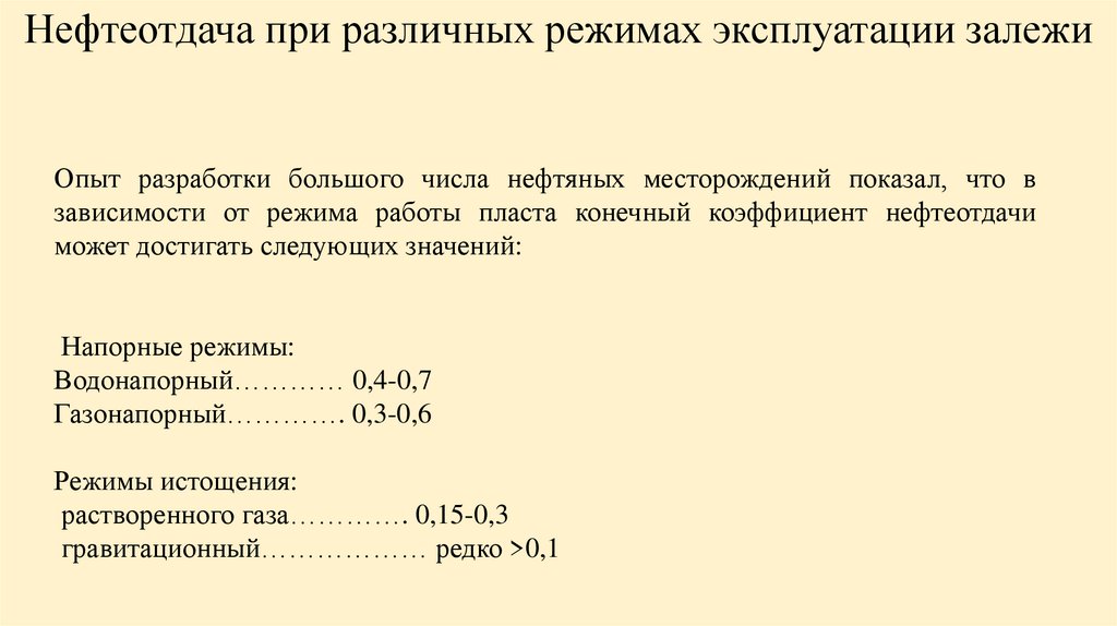 зависимости от режима работы пласта конечный коэффициент нефтеотдачи