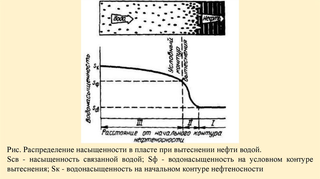 насыщенности на фронте вытеснения . В этой зоне из порового пространства может