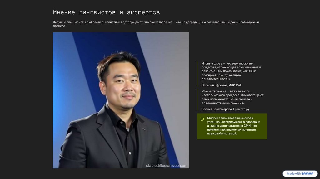 Мнение лингвистов и экспертовВедущие специалисты в области лингвистики подтверждают, что заимствования — это не деградация, а естественный и даже необходимый