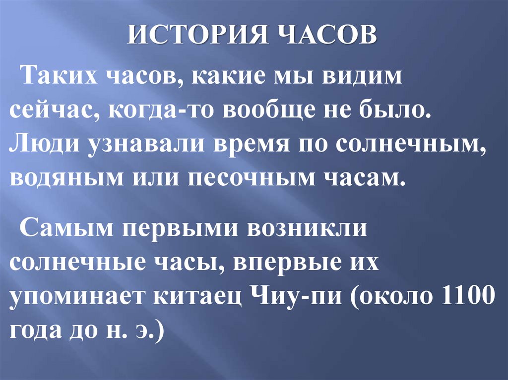 ИСТОРИЯ ЧАСОВНо солнечные показывали время
