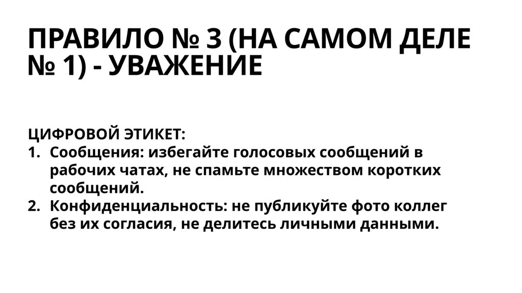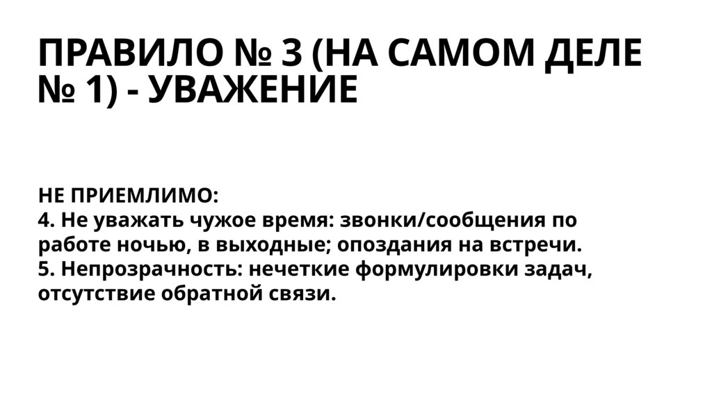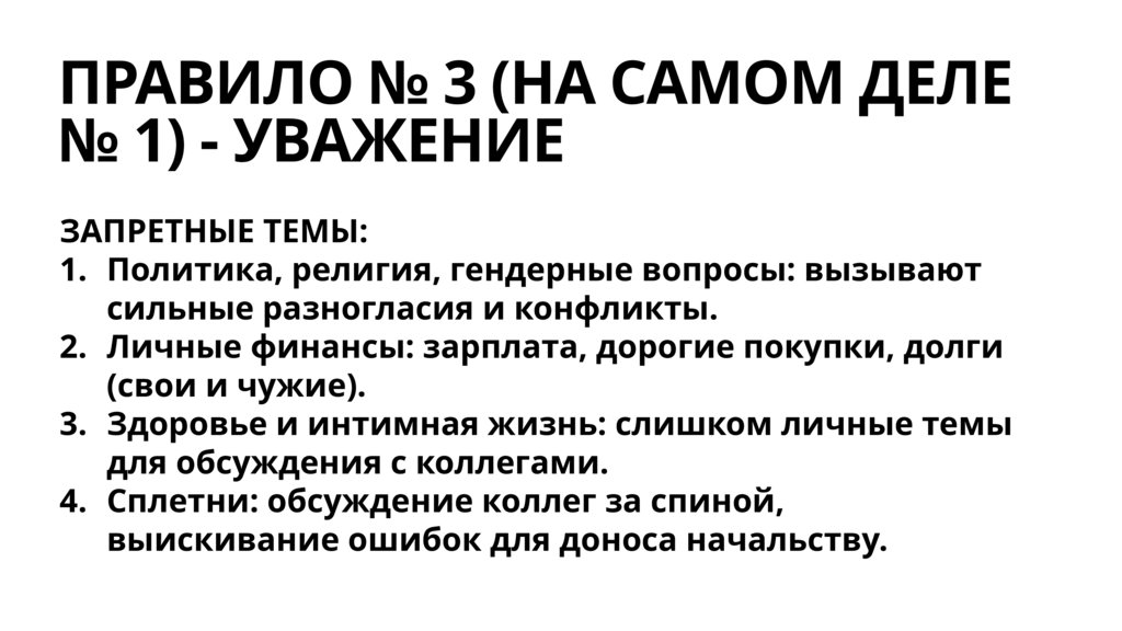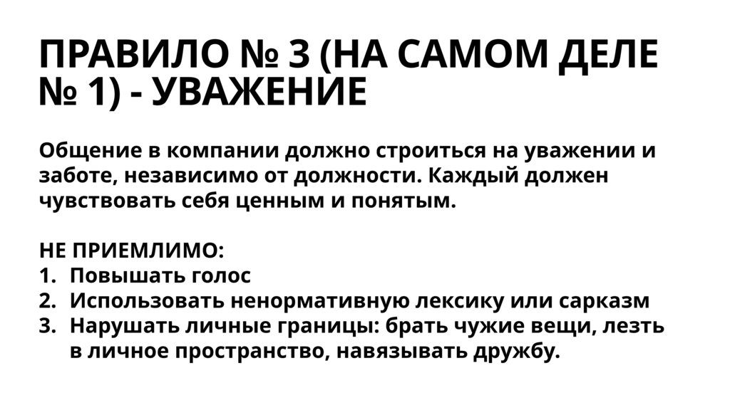 ПРАВИЛО № 3 (НА САМОМ ДЕЛЕ№ 1) - УВАЖЕНИЕ