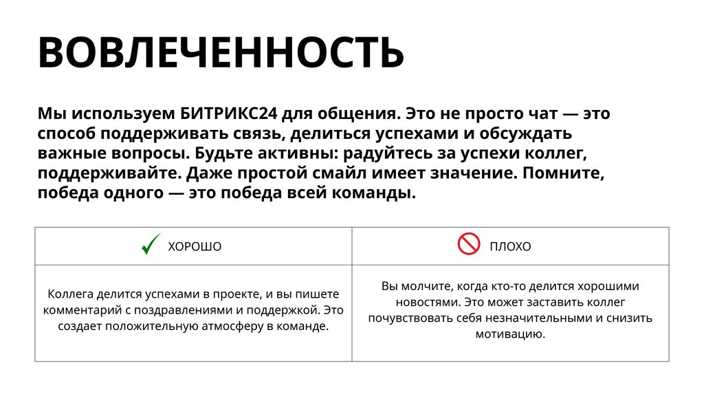 ВОВЛЕЧЕННОСТЬМы используем БИТРИКС24 для общения. Это не просто чат — это