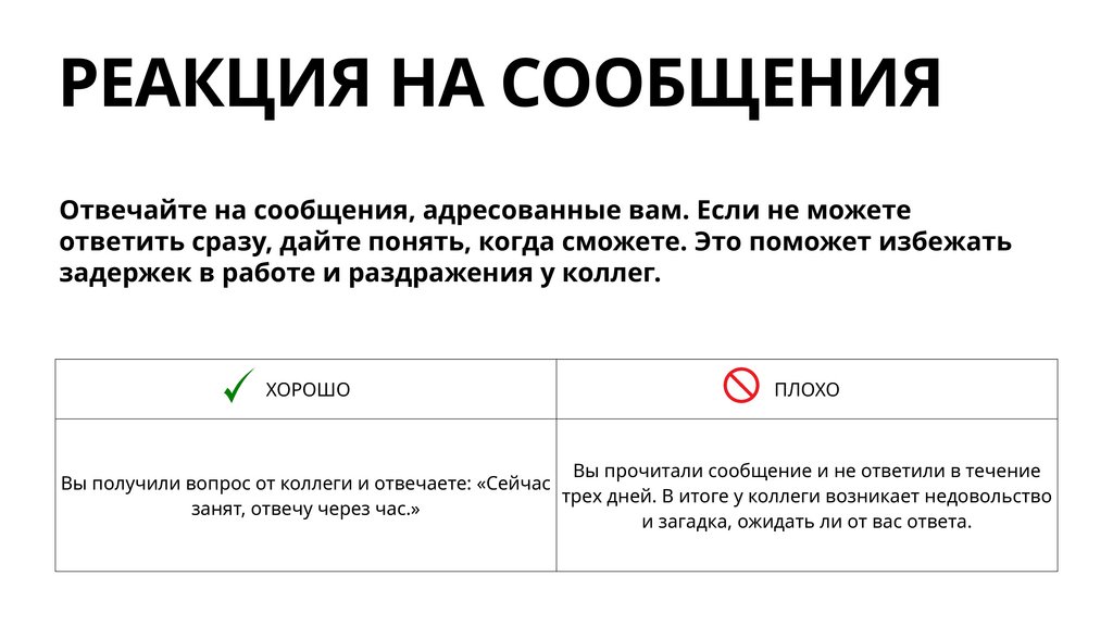 РЕАКЦИЯ НА СООБЩЕНИЯОтвечайте на сообщения, адресованные вам. Если не можете