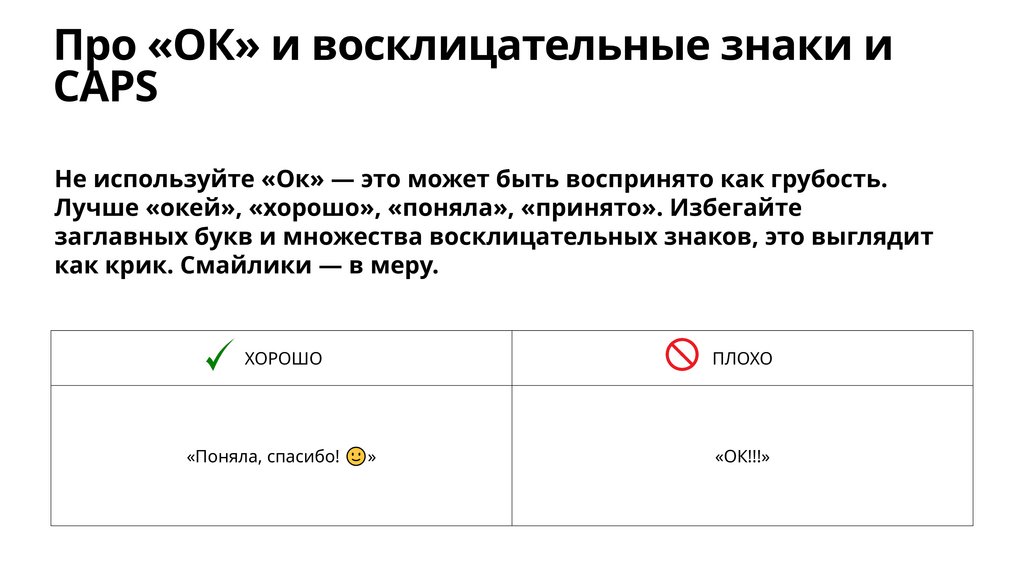 Не используйте «Ок» — это может быть воспринято как грубость.