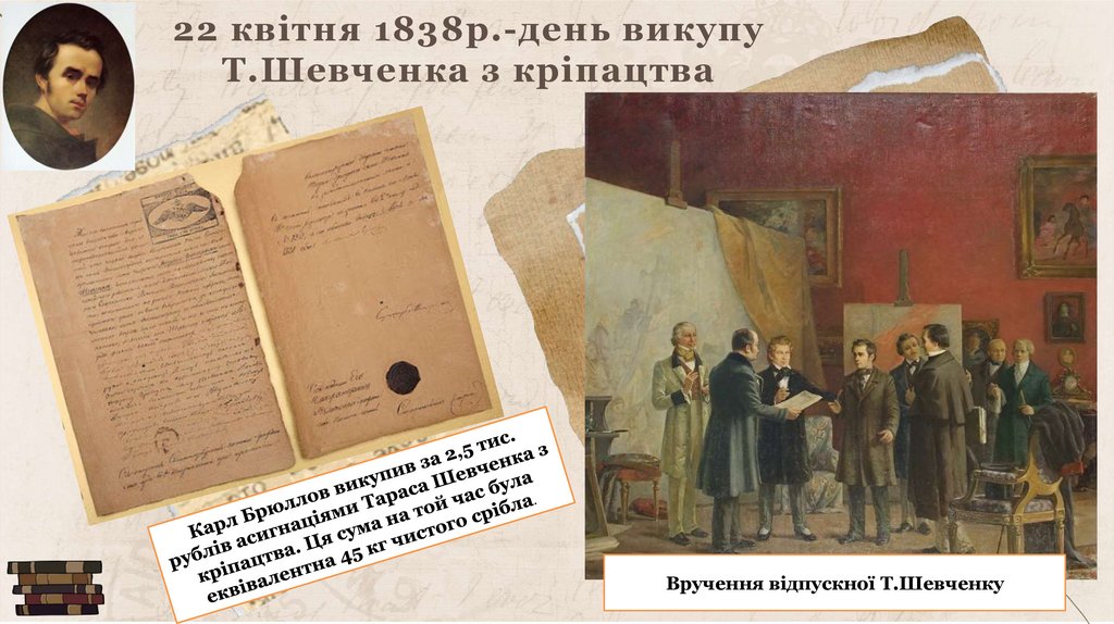 22 квітня 1838р.-день викупуТ.Шевченка з кріпацтва