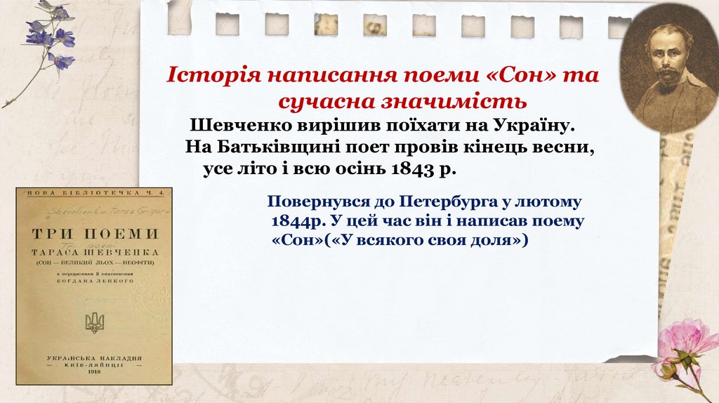 ♦ Сон в однойменному творіТ. Шевченка — це фантастика,