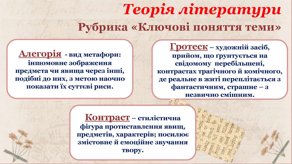 Теорія літературиРубрика «Ключові поняття теми»